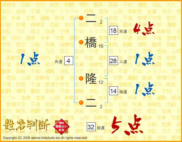 二橋隆二さんの総運は32画の5点!