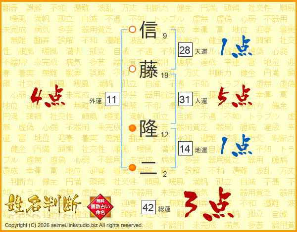 信藤隆二さんの人運は31画の5点!