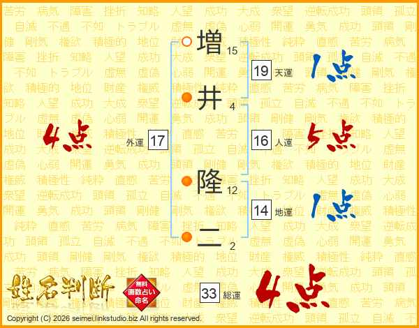 増井隆二さんの総運は33画の4点!