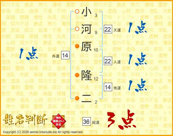 小河原隆二さんの天運は22画の1点!