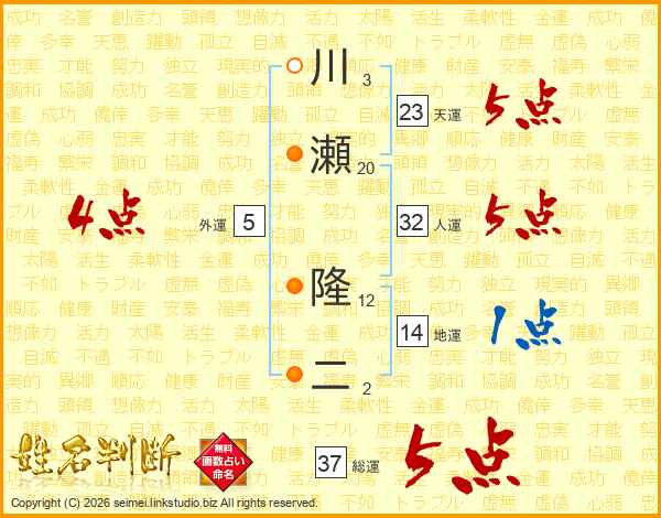 川瀬隆二さんの総運は37画の5点!