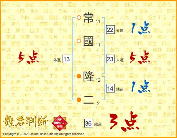 常國隆二さんの天運は22画の1点!
