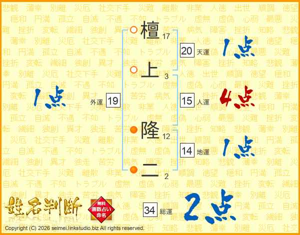 檀上隆二さんの地運は14画の1点!