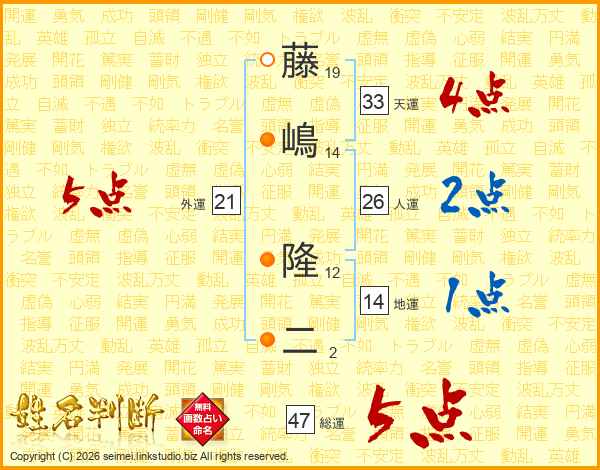 藤嶋隆二さんの総運は47画の5点!