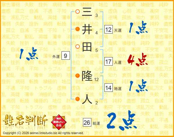 三井田隆人さんの総運は26画の2点!