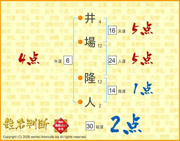 井場隆人さんの人運は24画の5点!