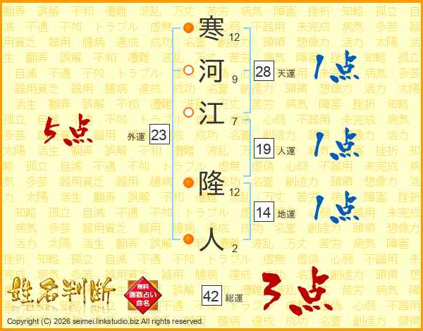寒(12画)河(9画)江(7画) 隆(12画)人(2画)