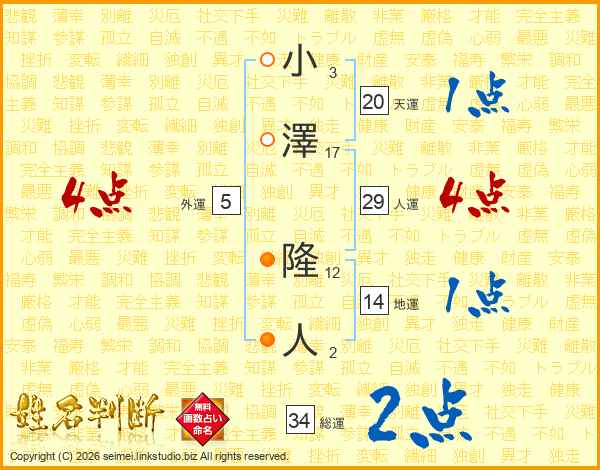 小澤隆人さんの総運は34画の2点!