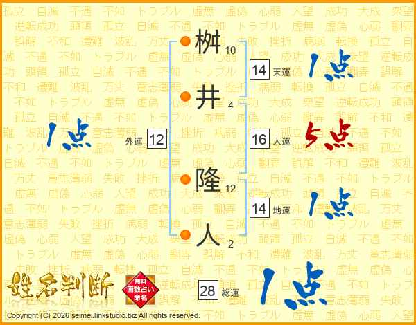 桝井隆人さんの総運は28画の1点!