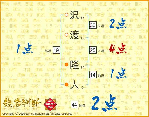 沢渡隆人さんの人運は25画の4点!