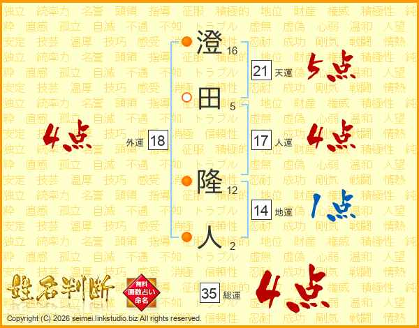 澄田隆人さんの総運は35画の4点!