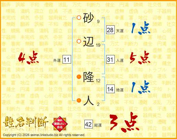 砂辺隆人さんの人運は31画の5点!