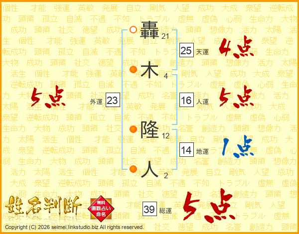 轟木隆人さんの総運は39画の5点!