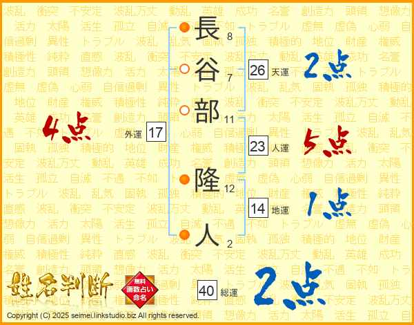 長谷部隆人さんの総運は40画の2点!