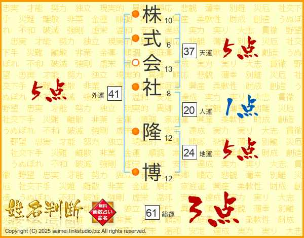 株(10画)式(6画)会(13画)社(8画) 隆(12画)博(12画)