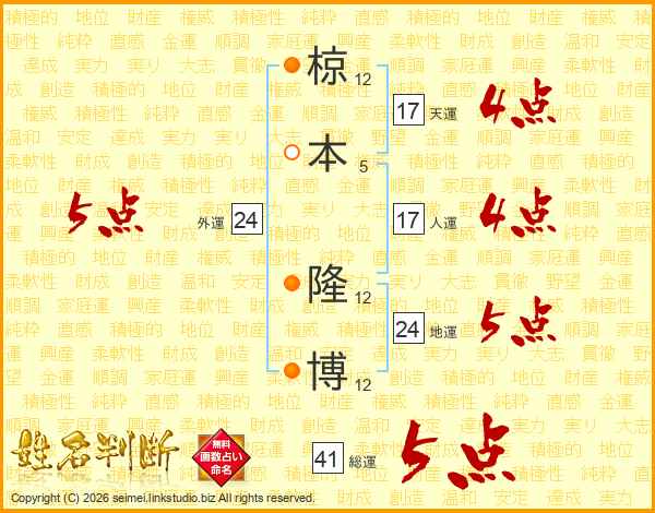 椋本隆博さんの人運は17画の4点!