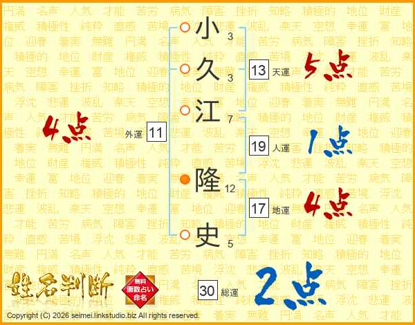 小(3画)久(3画)江(7画) 隆(12画)史(5画)