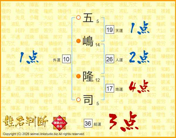 五嶋隆司さんの人運は26画の2点!