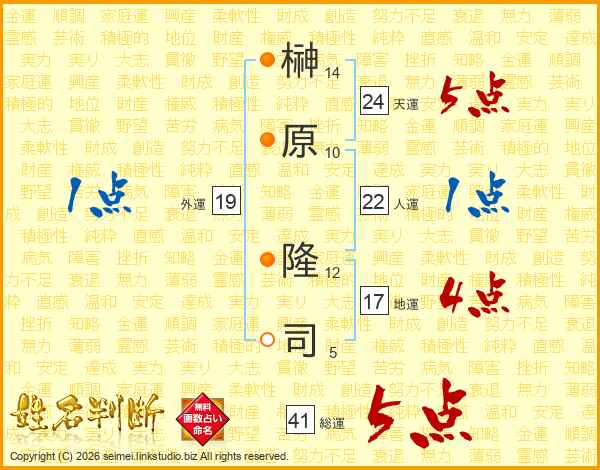 榊原隆司さんの天運は24画の5点!