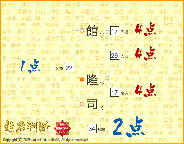 館(17画) 隆(12画)司(5画)