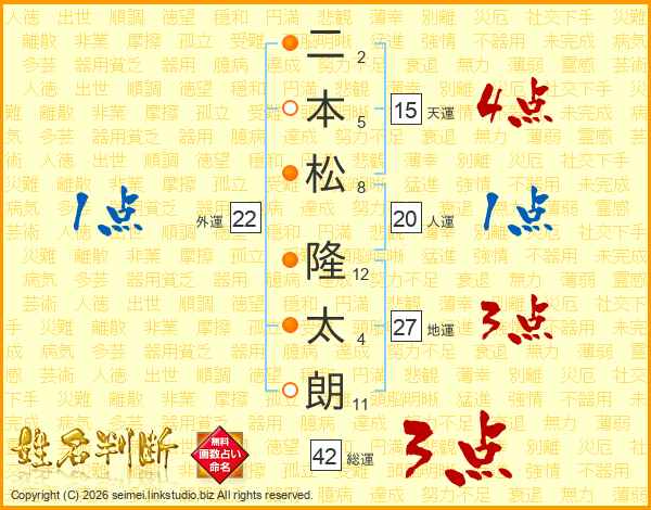 二本松隆太朗さんの天運は15画の4点!