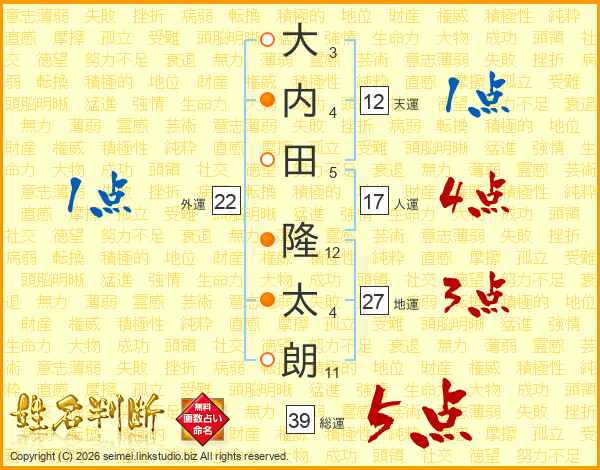 大内田隆太朗さんの総運は39画の5点!