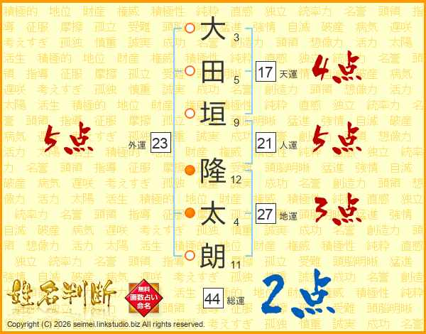 大田垣隆太朗さんの地運は27画の3点!