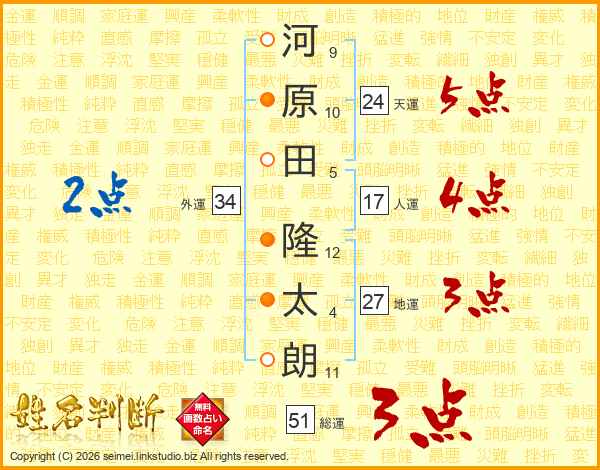 河原田隆太朗さんの天運は24画の5点!