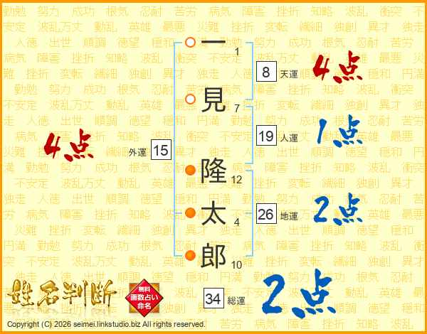 一(1画)見(7画) 隆(12画)太(4画)郎(10画)
