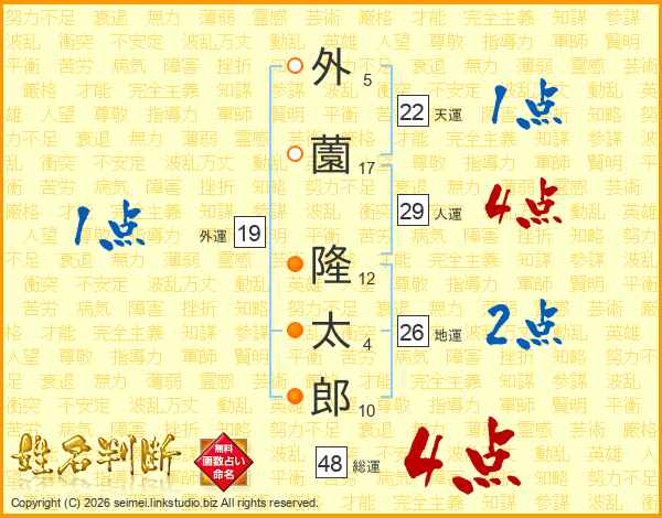 外薗隆太郎さんの総運は48画の4点!