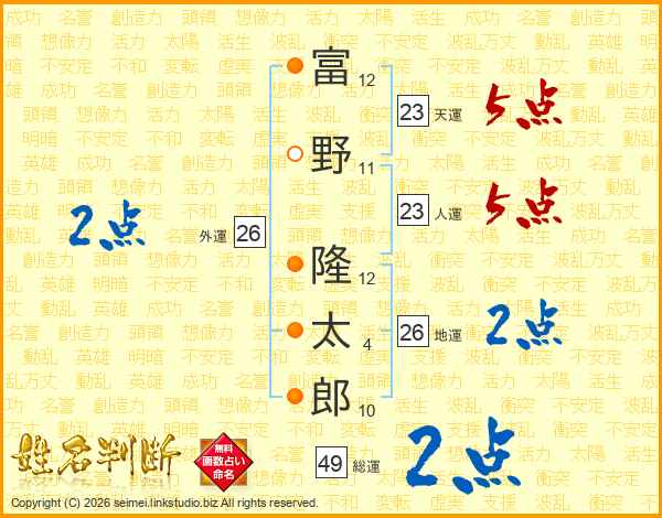 富(12画)野(11画) 隆(12画)太(4画)郎(10画)