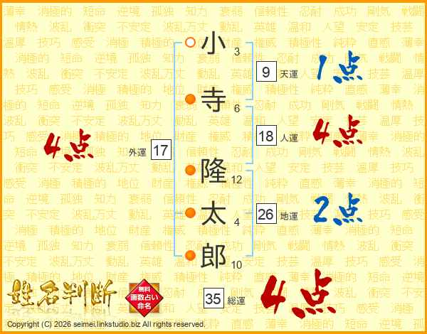 小寺隆太郎さんの総運は35画の4点!