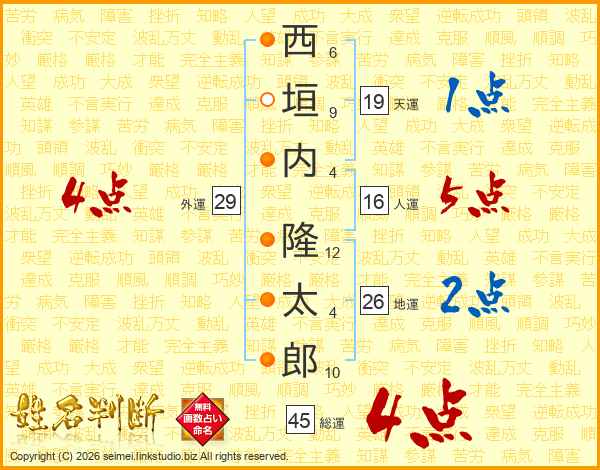 西垣内隆太郎さんの総運は45画の4点!