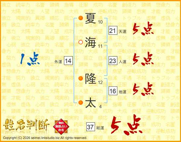 夏海隆太さんの総運は37画の5点!