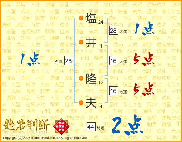 塩(24画)井(4画) 隆(12画)夫(4画)