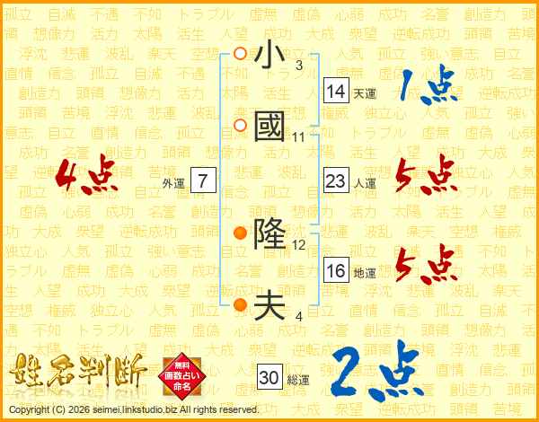 小國隆夫さんの天運は14画の1点!