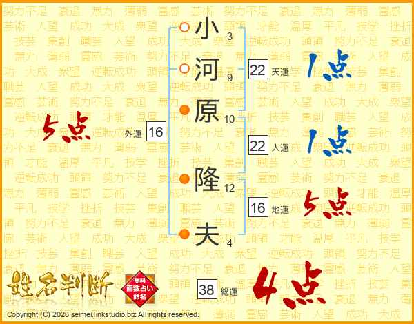 小河原隆夫さんの総運は38画の4点!
