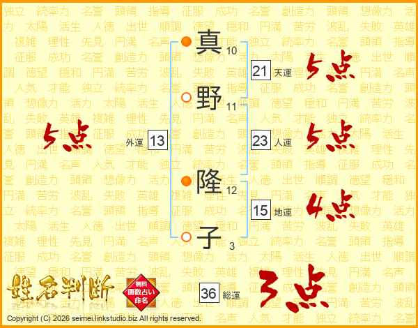 真野隆子さんの総運は36画の3点!