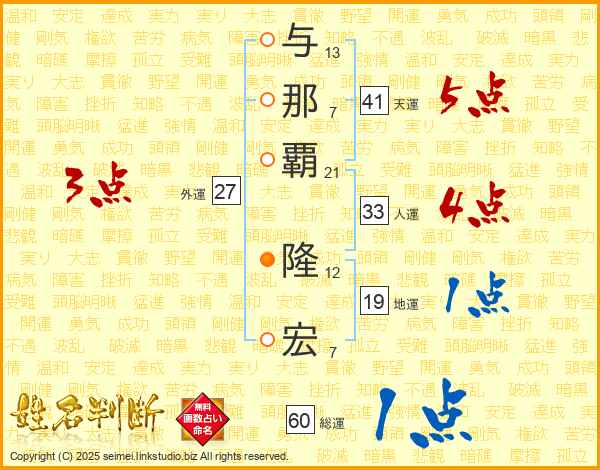 与那覇隆宏さんの天運は41画の5点!