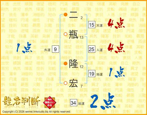 二瓶隆宏さんの総運は34画の2点!