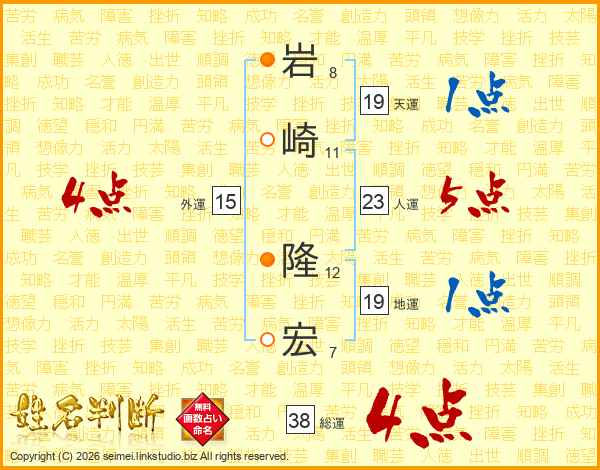 岩崎隆宏さんの総運は38画の4点!