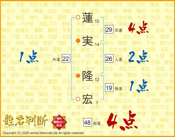蓮(15画)実(14画) 隆(12画)宏(7画)