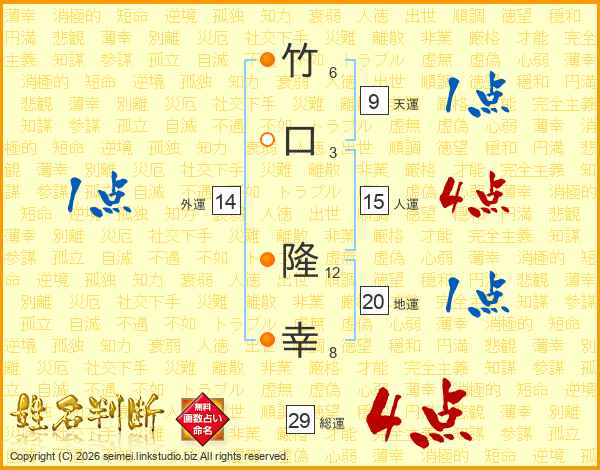 竹口隆幸さんの総運は29画の4点!