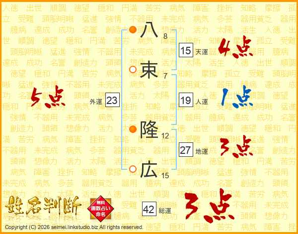 八束隆広さんの天運は15画の4点!