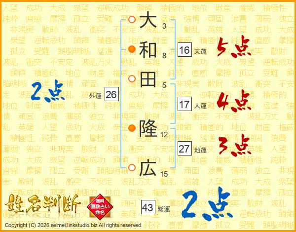 大和田隆広さんの地運は27画の3点!