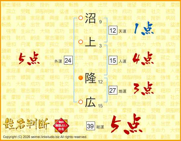 沼上隆広さんの総運は39画の5点!