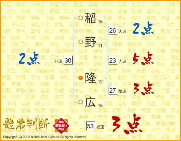 稲野隆広さんの天運は26画の2点!