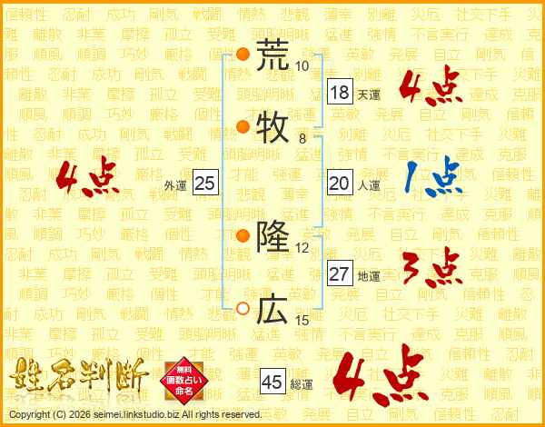 荒牧隆広さんの天運は18画の4点!