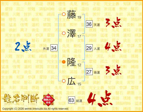 藤澤隆広さんの総運は63画の4点!