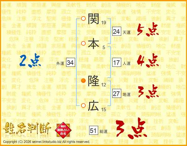 関本隆広さんの天運は24画の5点!